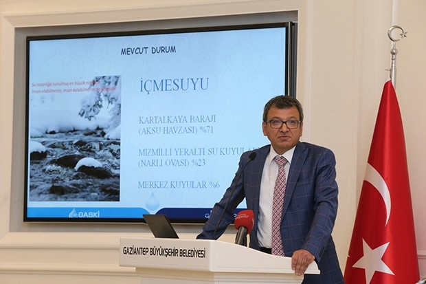 Öncelikle Gaziantep için 2016 yılı içmesuyu temininde cumhuriyet tarihin en zorlu yılı olduğunu ifade eden Sönmezler, Gaziantep’in içmesuyu temininde ana kaynak olan Kartalkaya’da doluluk oranın en düşük seviyelerine ulaştığını kaydetti. Barajda suyun seviyesini sabit tutabilmek için 80 km mesafeden (Göksu havzasından) Gölbaşı, Azaplı ve İnekli Göllerine su basılarak Kartalkaya barajının bu yolla beslenmesi sağladıklarını dile getiren Sönmezler, Gaziantep’i içmesuyu konusunda rahatlattıklarını söyledi.