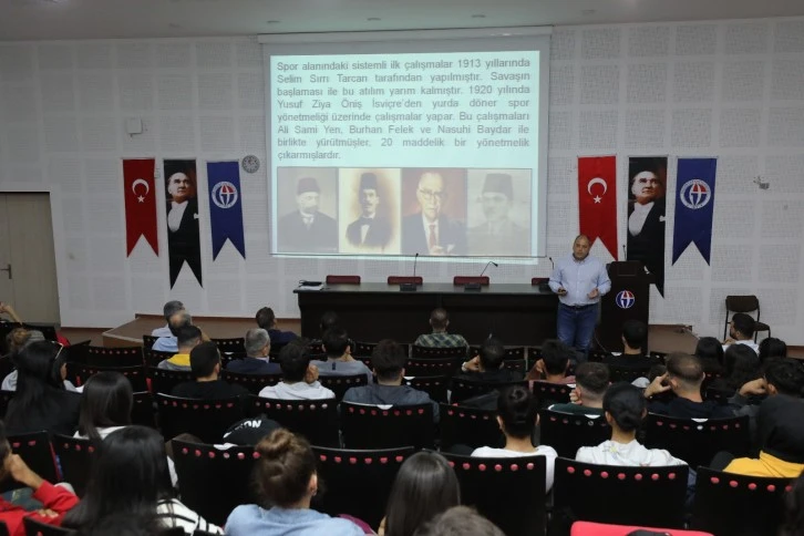 GAÜN Spor Bilimleri Fakültesi Konferans Salonu’nda yapılan etkinlikte konuşmacı olarak GAÜN Spor Bilimleri Fakültesi Öğr. Gör. Tarkan Tuzcuoğulları yer aldı.