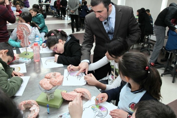 Beyin Farkındalığı Haftası’nın okul öncesi öğrenciden, merak eden ve öğrenebilir en yaşlı kişiye, toplumda beyin-sinir sistemi farkındalığını, beyin-sinir sistemi sağlığını ve işlevselliğini geliştirme bilincini yaymayı amaçladığını aktaran Doç. Dr. Orhan, etkinlik çerçevesinde öğrencilerin beyin maketlerini inceleyerek beynin yapısı ve işlevi, beynimizin sağlıklı olması, öğrenme ve hafızayı geliştirmek için yapılması gerekenler hakkında bilgilendirildiklerini söyledi.