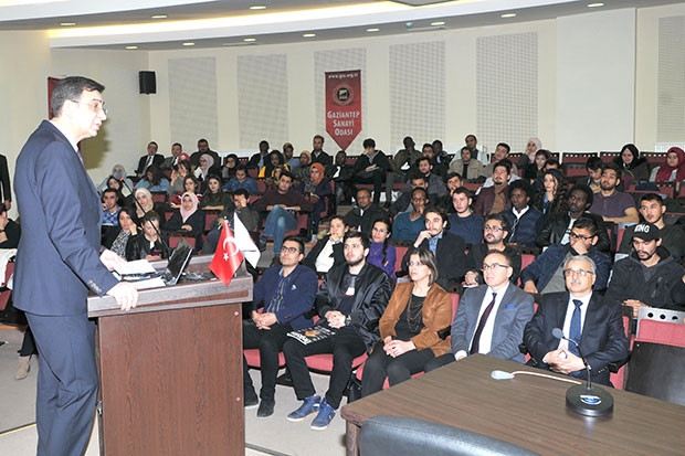 Protokol töreni sonrası GAÜN Mühendislik Fakültesi Dekanlık Binası Konferans Salonunda devam eden etkinlikte Gaziantep Üniversitesi ile Gaziantep Sanayi Odası arasında gerçekleşecek olan Ticaret Elçileri Projesi tanıtım toplantısında konuşan GAÜN Rektörü Prof. Dr. Ali Gür, “Bu proje ile uluslararası öğrencilerimiz bu konuda eğitim aldıkları üniversitelerinde kendilerini daha değerli hissedecekler ve biz onlara daha büyük katma değer kazandıracağız” dedi.