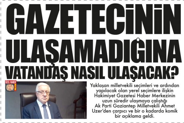 Yaklaşan milletvekili seçimleri ve ardından yapılacak olan yerel seçimlere ilişkin Hakimiyet Gazetesi Haber Merkezinin uzun süredir ulaşmaya çalıştığı Ak Parti Gaziantep Milletvekili Ahmet Uzer'den çarpıcı ve bir o kadarda komik bir açıklama geldi.