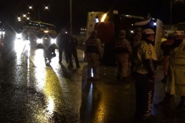 Gaziantep-Adana Otoban'ında aniden bastıran yağmurun ardından kayganlaşan yolda bir otobüs devrilerek takla attı, bir diğer otobüs ise yoldan çıkarak orta refüje çıktı. Yaşanan kazalarda can kaybı olmazken 13 yolcu hafif şekilde yaralandı.