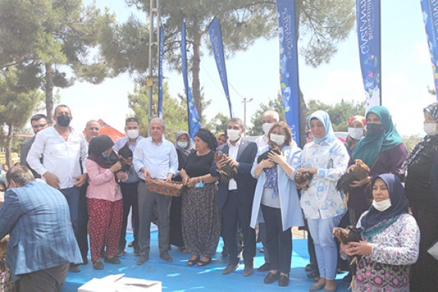 Gaziantep Büyükşehir Belediyesi Doğal Hayatı Koruma Daire Başkanlığı tarafından yürütülen destek projesi kapsamında her kadın çiftçiye 15’er adet olmak üzere 9 bin adet hibe edilen tavukların dağıtımı AK Parti Merkez Karar ve Yönetim Kurulu (MKYK) üyesi Şamil Tayyar, MHP Gaziantep Milletvekili Ali Muhittin Taşdoğan, Büyükşehir Belediye Başkanı Fatma Şahin, İslahiye Belediye Başkanı Kemal Vural ve Doğal Hayatı Koruma Daire Başkanı Celal Özsöyler tarafından yapıldı.