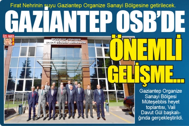 Gaziantep OSB Müteşebbis Heyet Toplantısı, Vali Davut Gül başkalığında gerçekleştirildi. Toplantının ardından açıklamalarda bulunan Gaziantep Valisi Davut Gül, Fırat Nehri suyunun Gaziantep OSB’ye getirilmesi ile ilgili ihalenin sonuçlandığını söyledi.