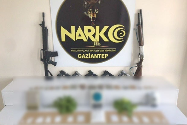 Gaziantep Emniyeti Narkotik Suçlarla Mücadele Şube Müdürlüğü ekipleri Vatan, Hacıbaba, Akdere, Ulaş, Aydıntepe, Bekirbey ve Özgürlük mahallelerinde helikopter ve drone destekli 260 personel ile uyuşturucu madde imal ve ticareti yapan sokak satıcılarına (torbacı) yönelik 32 ikamet ve 12 araca operasyon yaptı. Yapılan aramalarda, 1 kilo 600 gram metamfetamin, 700 gram esrar, 300 gram sentetik kannabinoid, 550 gram eroin, 280 adet captagon hap, 110 adet ecstasy hap, 34 kök kenevir bitkisi, 5 adet hassas terazi, 5 adet tabanca, 2 adet pompalı tüfek ele geçirildi.