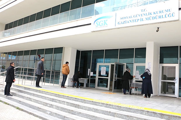 Gaziantep SGK İl Müdürlüğü Koronavirüs tehlikesine karşı hem vatandaşları hem de memurları korumak için hizmet binası önüne 4 adet iç hat telefon çektirdi.