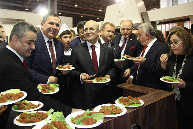 Unesco Gastronomi Kenti Gaziantep’in geleneksel lezzetlerinin ve tarım ürünlerinin sergilendiği GTB standını ziyaret eden Başbakan Yardımcısı Mehmet Şimşek ve Gıda Tarım ve Hayvancılık Bakan Yardımcısı Mehmet Daniş, burada GTB Meclis Başkanı Selami Memiş, GTB Yönetim Kurulu Başkanı Ahmet Tiryakioğlu ve GTB Meclis Üyeleri tarafından karşılandı. Gaziantep Milletvekilleri Nejat Koçer, Abdülkadir Yüksel, Gaziantep Büyükşehir Belediye Başkanı Fatma Şahin ve GSO Yönetim Kurulu Başkanı Adil Sani Konukoğlu’nun da yer aldığı ziyarette, konuklara Gaziantep mutfağının eşsiz lezzetlerinden antepfıstıklı çiğköfte ikram edildi.