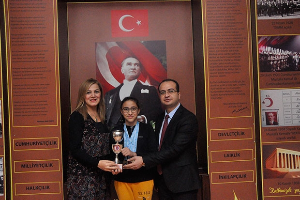Akademik başarılarını birçok alandaki başarılarıyla taçlandıran Gaziantep Kolej Vakfı Özel Okulları sportif alanlarda da Gaziantep’in gururu olmaya devam ediyor. Yüzme alanında isminden sıkça söz ettiren Gaziantep Kolej Vakfı Özel Okulları öğrencileri bu kez de altın kulaç Dicle Su Sertpolat’ın zaferiyle gündeme geldi. Gaziantep Kolej Vakfı Özel Ortaokulu öğrencisi Dicle Su Sertpolat katıldığı 11 _ 12 Yaş Bölge Müsabakalarında üç altın bir gümüş ve bir bronz madalya alarak yeni bir rekora imza attı. Zaferini öğretmen ve arkadaşlarıyla kutlayan Dicle Su elde ettiği başarılarda ailesinin ve okulunun yanı sıra bağlı bulunduğu Şehitkamil Spor Kulübü hocalarına borçlu olduğunu ifade ederek ulusal derecelere imza atarak uluslararası müsabakalarda da yarışmak istediğini ifade etti. Diclesu SErtpolat’ın akademik alanlarda da başarılı bir öğrenci olduğunu ifade eden GKV Özel Ortaokulu Müdür Yardımcısı Yeliz Bircan Gaziantep’te gerçekleştirilen 11 _ 12 Yaş Bölge Müsabakalarında şampiyonluk ipini göğüsleyen öğrencilerinin elde ettiği başarıları kutladıklarını ifade ederek “ Gaziantep’te gerçekleştirilen ve Mersin ,Kayseri ,Adana ,Konya ,İskenderun ,Kayseri ,Nevşehir ve Gaziantep’ ten birçok yarışmacının katıldığı ‘’11 _ 12 Yaş Bölge Müsabakaları’’nda Gaziantep Kolej Vakfı Özel Ortaokulu Öğrencisi, Şehitkamil Spor Kulübü Sporcusu Dicle Su Sertpolat :100 Metre Karışık Yüzmede Bölge 1’incisi, 400 Metre Serbest Yüzmede Bölge 2’ncisi , 4x50 Karışık Bayrak Yarışı’ nda Bölge 1’incisi , 200 Karışık Yüzmede Bölge 2’ncisi,100 Metre Kelebek Yüzmede Bölge 3’cü , 4x100 Serbest Bayrak Yarışı’ nda Bölge 1 ‘incisi olmuştur. Öğrencimizi elde etmiş olduğu başarıdan dolayı tebrik ediyoruz. Başarılarının ulusal ve uluslararası mecralarda da devam etmesini temenni ediyoruz” dedi. Diclesu Sertpolat okulda düzenlenen törenle madalya ve kupasını GKV Özel Ortaokulu Müdür Yardımcıları Yeliz Bircan ve Taner Arslan’dan aldı. Şampiyon Diclesu Sertpolat’ın önümüzdeki süreçte bir çok ulusal yarışmaya katılacağı da öğrenildi.