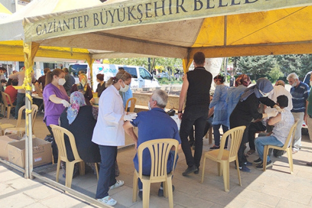 Türkiye genelinde başlayan korona virüs aşı seferberliği kapsamında Gaziantep’in ilçelerinde aşı noktaları kurulmaya devam ediyor. Bu kapsamda Gaziantep'in İslahiye ilçesi Demokrasi Meydanı'nda kurulan aşı istasyonunda vatandaşlar randevusuz aşı olabiliyor.