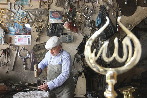 Gaziantep'in son alem ustası Yaşar Kervancıoğlu'nun yaptığı alemler, binlerce minarenin tepesini süslüyor. Gaziantep'in en eski bakırcı ustalarından olan Kervancıoğlu ailesinin son temsilcisi olan Yaşar Kervancıoğlu, alem yapmanın maddi getirisinin yanı sıra manevi bir yönü olduğunu ifade ediyor. Kervancıoğlu, sadece minare değil kubbe ve mimberleri için de alem yaptığını belirterek, “Baba mesleği olduğu için, gözümüzü açtık bu mesleğin içindeyiz. Biz de 13 nesilden beri bu mesleği yapıyoruz. Aynı aile, aynı yerde bu işi yapıyor” dedi. 80 yaşındaki alem ustası Yaşar Kervancıoğlu, ilerleyen yaşı nedeniyle mesleğini güçlükle sürdürebildiğini kaydetti. Kervancıoğlu, “Ama şimdi ben yaşlandım. Eskisi gibi çırak, kalfa kalmadı. Şimdilerde kolay olsun para olsun diyorlar. Eskiden ustam gibi yapabileyim, ustam kadar sanatkar olmalıyım diye gelip, 10-15 sene çalışırmışlar” ifadelerini kullandı.