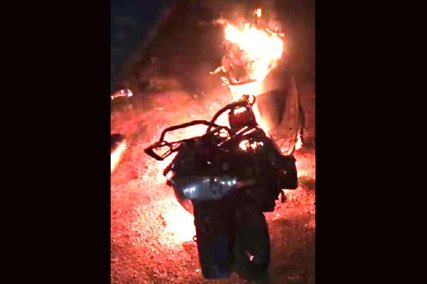 Öfkeli genç daha sonra motosiklet yanarken; "30 lira verdim" dediği motosikletin lambalarını elindeki sopayla kırdı ve 'oh manzaraya karşı ne güzel yaktım seni' diye söylenmeyi de sürdürdü.