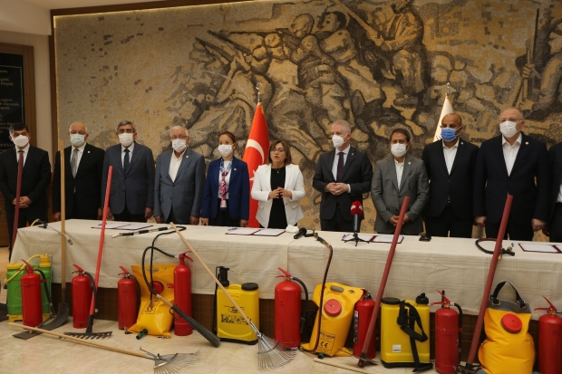 Gaziantep Büyükşehir Belediyesi, Gaziantep Valiliği ve Gaziantep Orman İşletme Müdürlüğü iş birliğinde olası bir yangın tehlikesinde kullanılmak üzere Gaziantep’e bağlı 180 orman köyüne malzeme yardımı yapılması amacıyla protokol imza töreni düzenlendi.