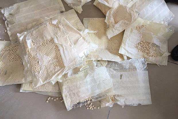 Gaziantep Emniyet Müdürlüğü Narkotik Suçlarla Mücadele Şube Müdürlüğü görevlileri tarafından uyuşturucu madde imal ve ticareti yapan şahıslara yönelik operasyonlar sonucunda, Çukur Mahallesi'nde bulunan bir iş yerinde narkotik köpeği Badi yardımıyla arama yapıldı. Aramada 6 kilogram ağırlığında yaklaşık 35 bin adet Captagon uyuşturucu hap ele geçirildi.