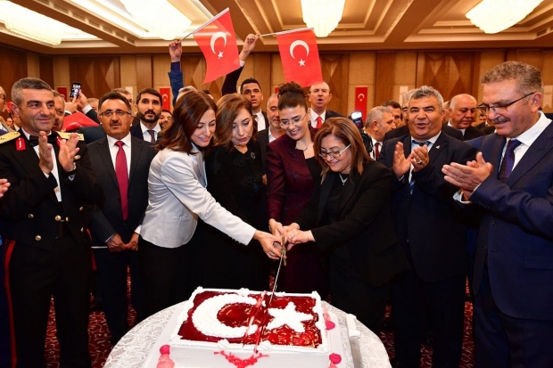 Gaziantep'te bir otelde düzenlenen 29 Ekim Cumhuriyet Bayramı resepsiyonuna Vali Davut Gül, Büyükşehir Belediye Başkanı Fatma Şahin, 5'inci Zırhlı Tugay Komutanı Hacı Halil Osma, Şehitkamil Belediye Başkanı Rıdvan Fadıloğlu, Şahinbey Belediye Başkanı Mehmet Tahmazoğlu, vali yardımcıları, ilçe belediye başkanları, oda başkanları, askeri erkan, gaziler ve vatandaşlar ile şehit aileleri katıldı. Resepsiyonda konuşan Vali Gül yaptığı konuşmada, Cumhuriyet Bayramını kutladı. Türkiye Cumhuriyeti’nin 96 yıllık tecrübesiyle dünyada örnek bir ülke konumuna geldiğini kaydeden Gül, “Hiç kimsenin dilinden, dininden, renginden ve mezhebinden dolayı bir ayrımcılığa tabi tutulan bir ülke değiliz. Türkiye'nin kırmızı çizgisi al bayrağı, bağımsızlığı, ülkenin birliği ve bölünmezliğidir. Vatandaşlarımızın her biri birinci sınıf vatandaş olarak ülkemizin geleceğine katkı sunan insanlardır. Biz farklılıklarımızı ne kadar zenginlik olarak görsek bile bunu kaşıyan kimi zaman sağ sol diyen kimi zaman etnik anlamda kimi zamanda mezhepsel anlamda bu farklılıkları kaşıyanlar olabiliyor bundan sonrada olacaklardır. Ama bizler saflarımızı sık tutarak birbirimizi daha çok severek ülkemizi gelecek yıllara götüreceğiz" dedi.