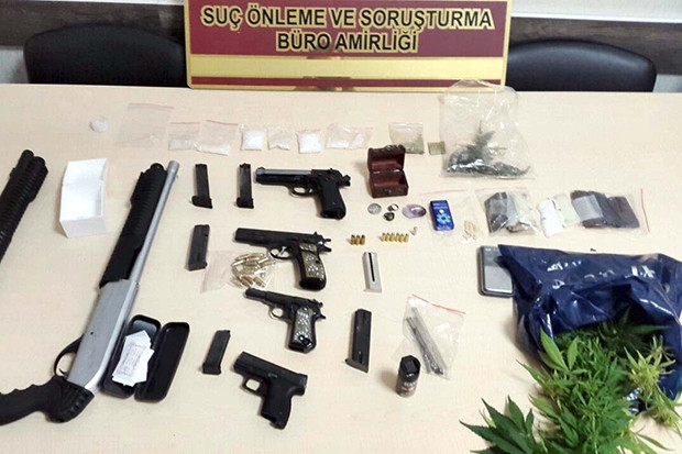 GAZİANTEP'te, çeşitli suçlardan aranan kişi 4 tabanca, 2 tüfek, uyuşturucu ve tarihi eserle gözaltına alındı.