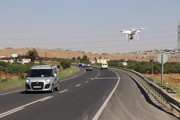 Gaziantep'te polis ekiplerinin drone ile yaptığı trafik uygulamasında, 10 dakika içerisinde 7 araç hatalı sollama yaparak ceza yedi.