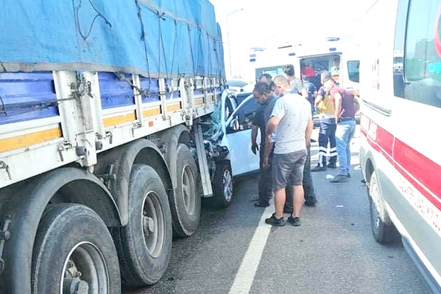 Gaziantep-Adana otobanında bir araç, tıra arkadan çarptı, kazada yabancı uyruklu 3 kişi ölürken 2 kişi yaralandı