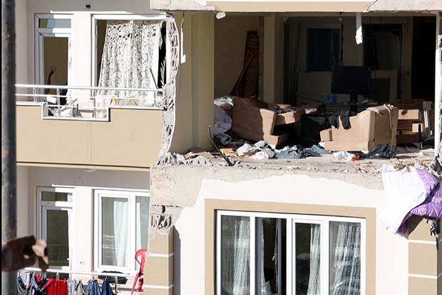 Burak Mahallesi'nin 62 numaralı sokağında bulunan 8 katlı apartmanın 5'inci katındaki dairenin dış cephe duvarının ise ikinci patlamanın şiddetiyle tamamen yerinden söküldüğü ve oturma odasının harabeye döndüğü görüldü. Temizlik görevlileri, patlamaların yaşandığı bölgedeki yol ve ara sokaklarda temizlik yaparken, saldırının izleri siliniyor.