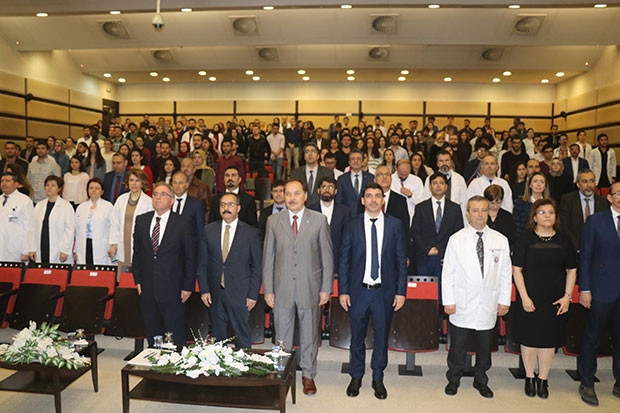 Gaziantep Üniversitesi Rektörü Ali Gür ise, tüm sağlık çalışanlarının 14 Mart Tıp Bayramını kutlayarak başladığı konuşmasında, “Sanat ve zanaat arasındaki en büyük fark, zanaat ezberlenilmiş kalıpların motiflere dökülmüş halidir. Bunu bir makinada yapabilir. Ama sanatı içerisindeki felsefesiyle, hikmetiyle ancak bir insan yapar. Fakat bu tıp mesleği öğle ilginç bir meslektir ki, içerisinden felsefesini ve hikmetini çıkarırsanız malesef monoton bir hayat oluşur. Bilgi çok hızlı güncelleniyor. İnsanoğlunun şu an önündeki en büyük tehlike çok hızlı dönüşen bilgi çağında o hıza yetişememesidir. Bilginin en fazla güncellendiği alanda tıp alanıdır“ diye konuştu.