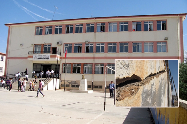 Araban ilçesinde 307 öğrencinin eğitim-öğretim gördüğü Yukarı Karavaiz Orta okulunun 5 yıllık binası çökme tehlikesi yaşıyor.