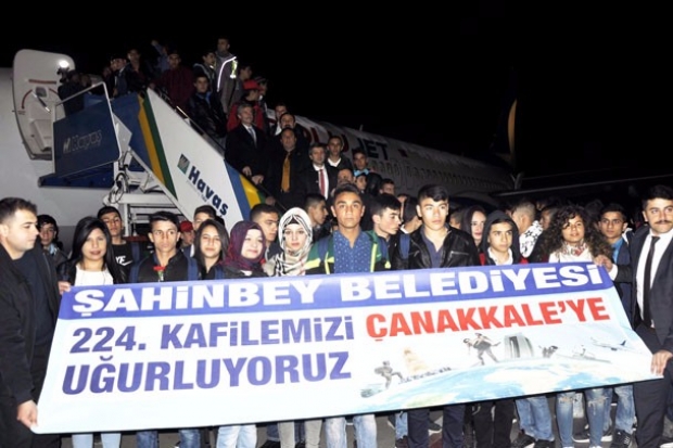 Çanakkale'ye gitmek üzere yola çıkan öğrenciler için Havalimanında düzenlenen törene, Şahinbey Belediye Başkanı Mehmet Tahmazoğlu, İl Müftüsü Ahmet Çelik, İl Milli Eğitim Müdürü Cengiz Mete, protokol üyeleri ve öğrenciler katıldı.