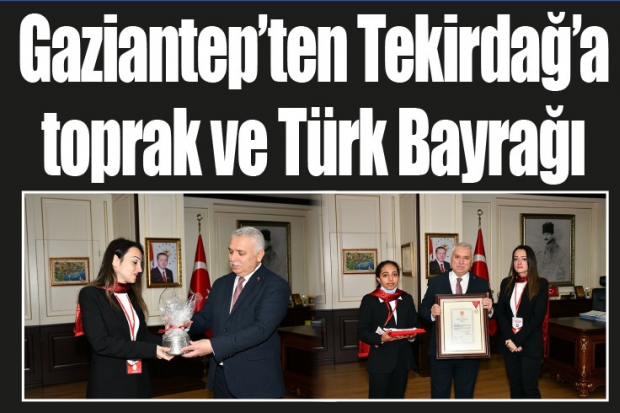 Gaziantep Valiliği koordinesinde düzenlenen “Gaziantep'in Düşman İşgalinden Kurtuluşu'nun 100. Yıldönümü Etkinlikleri” kapsamında, 80 ile gönderilen şehit kanlarıyla sulanan toprak ve Şanlı Türk Bayrağı Tekirdağ Valiliğine teslim edildi.