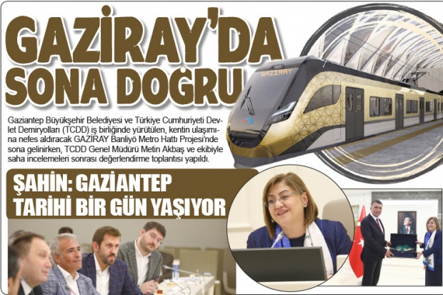 Gaziantep Büyükşehir Belediyesi ve Türkiye Cumhuriyeti Devlet Demiryolları (TCDD) iş birliğinde yürütülen, kentin ulaşımına nefes aldıracak GAZİRAY Banliyö Metro Hattı Projesi’nde sona gelinirken, TCDD Genel Müdürü Metin Akbaş ve ekibiyle saha incelemeleri sonrası değerlendirme toplantısı yapıldı.