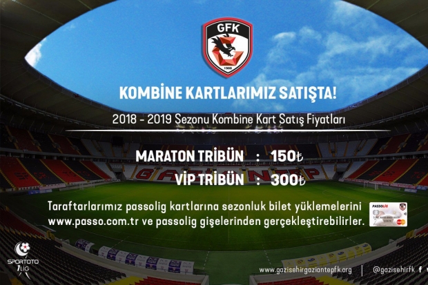 Bugün itibariyle passo.com.tr ve passolig gişelerinden satışa sunulan kombine kartları, taraftarlar passolig kartlarına yükleyerek bir sezon boyunca takımlarının iç sahadaki tüm maçlarını takip edebilecekler.