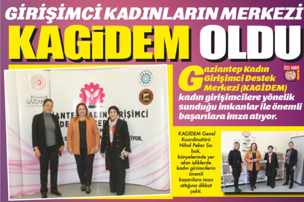 KAGİDEM Kadın Girişimci Destek Merkezi; Gaziantep Büyükşehir Belediyesi, Gaziantep Sanayi Odası (GSO) ve İpekyolu Kalkınma Ajansı (İKA) ortaklığında girişimci kadınlara yönelik kuruldu. Bugün önemli başarı hikayelerine imza atan KAGİDEM Genel Koordinatörü Nihal Peker Sabak, merkezi Hakimiyet Gazetesi Yazı İşleri Müdürü Sabiha Kocaman ile Gazeteci Merve Tanrıöver'e tanıttı.