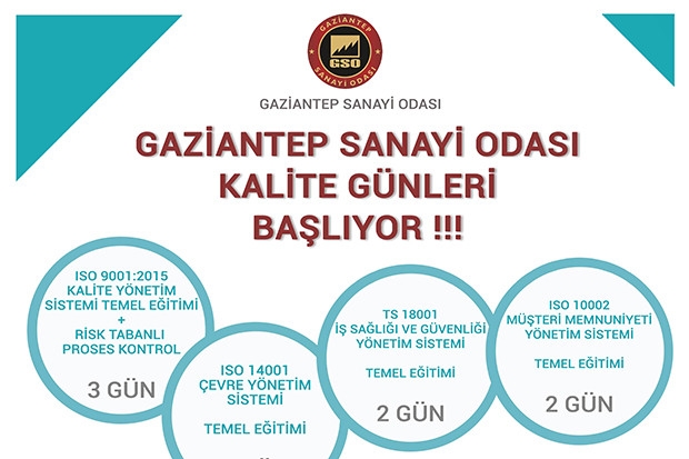Gaziantep Sanayi Odası (GSO) ve Türk Standartları Enstitüsü (TSE) işbirliği ile kalite eğitimleri verilecek.
