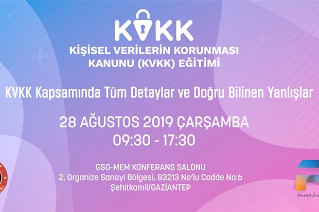Gaziantep Sanayi Odası (GSO) ile Rasyotek İnsan Kaynakları iş birliğinde 28 Ağustos 2019 Çarşamba günü saat 09.30’da GSO-Mesleki Eğitim Merkezi’nde (GSO-MEM) “6698 sayılı Kişisel Verilerin Korunması Kanunu (KVKK) Eğitimi” düzenlenecek.