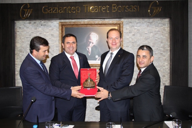 Gaziantep Ticaret Borsası (GTB) Meclis Başkanı Selami Memiş, Yönetim Kurulu Başkanı Ahmet Tiryakioğlu ve Meclis Üyeleri tarafından karşılanan Edirne heyetine, Gaziantep tarımı, ekonomisi ve borsa faaliyetleri hakkında bilgiler verildi.