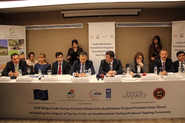 Özel bir otelde düzenlenen törende, Gaziantep Ticaret Borsası’nın, ‘Antepfıstığı Mükemmeliyet Merkezi’ ve ‘ Antepfıstığı Lisanslı Depoculuk’ projeleriyle, Gaziantep Büyükşehir Belediyesinin BİOGAZ, GSO’nun da ‘ GAP Bölgesi’nde Suriye Krizinin Etkilerinin Azaltılması ’projeleri protokol imza töreni yapıldı. Törenin açılış konuşmasını yapan Kalkınma Bakanı Cevdet Yılmaz, Gaziantep’te bugün imza altına alınan projelerin ortalama maliyetinin 45 milyon TL tutarında olduğunu ifade etti. GTB tarafından hazırlanan Antepfıstığı Mükemmeliyet merkezinin toplam proje bedelinin yaklaşık 2 milyon TL olduğu belirten Bakan Yılmaz, bu projenin yüzde 75’nin İpekyolu Kalkınma Ajansı yüzde 25’nin de Gaziantep Ticaret Borsası tarafından karşılanacağını söyledi. Bakan Yılmaz, ayrıca yine Gaziantep Ticaret Borsası tarafından hazırlanan 'Antepfıstığı Lisanslı Depoculuk’ projesinin de 13 milyon 900 bin TL tutarında olduğunu sözlerine ekledi. Bakan Yılmaz, bu projenin de 75’nin İpekyolu Kalkınma Ajansı yüzde 25’nin de Gaziantep Ticaret Borsası tarafından karşılanacağını sözlerine ekledi. Törende Gaziantep Büyükşehir Belediye Başkanı Fatma Şahin de, Büyükşehir Belediyesi Kalkınma Bakanlığı işbirliğiyle hazırlanan BİOGAZ projesi hakkında açıklamalarda bulundu.Gaziantep’te bu projeyle büyükbaş, küçükbaş ve tavukçuluk gibi hayvan yetiştiriciliğinde gübre atıklarının Biogaz’a çevrilmesinin hedeflendiğini kaydeden Şahin, bu yöntemle 9 milyon 939 metreküp Biogaz elde etmeyi planladıklarını söyledi. GTB Yönetim Kurulu Başkanı Ahmet Tiryakioğlu ise Antepfıstığının geliştirilmesini amaçlayan Antepfıstığı Mükemmeliyet Merkezi ve Antepfıstığı Lisanslı Depoculuk projeleri hakkında bilgiler verdi. Antepfıstığının yetiştirildiği şehrin ismini taşıyan dünyadaki nadir ürünlerden biri olduğuna dikkat çeken Tiryakioğlu, “Yeşil altın diye tabir ettiğimiz antepfıstığı bölgemizde üretimi en fazla yapılan ürünlerin başında gelmekte. On binlerce çiftçimizin en önemli geçim kaynağı olan antepfıstığında üretimi artırarak dünya piyasalarında hak ettiğimiz noktaya gelmek için borsa olarak özellikle son 2 yıldır bu konuda büyük çabalar sarf ediyoruz. Deyim yerindeyse bu ürünümüzle yatıp bu ürünümüzle kalkıyoruz. Asırlardır bu topraklarda kök salmış, ata yadigarı antepfıstığımızı geliştirdiğimiz bu iki projeyle daha üst noktalara taşımak istiyoruz” dedi. Kalitesi, tadı ve aromasıyla İran ve Amerikan fıstıklarının çok üzerinde bir değere sahip olan antepfıstığını, işleme teknolojileri bakımından da dünya pazarlarında daha rekabetçi hale getirmek istediklerini kaydeden Tiryakioğlu, Antepfıstığı Mükemmeliyet Merkezi projesi borsamız, İpekyolu Kalkınma Ajansı ve Gıda Tarım ve Hayvancılık İl Müdürlüğü iş birliğinde yürütülmekte. Bu merkez inşallah tam olarak faaliyete girdiğinde, in-vitro (doku kültürü) yöntemi ile fidan yetiştiriciliği, sertifikalı aşılı fidan yetiştiriciliği, tam kontrollü otomasyonlu sera yapımı, çiftçi sertifikasyon sistemi, çiftçi eğitim merkezi gibi üreticilerimizin faydalanabileceği birçok hizmeti bir arada verecek” dedi. Borsanın ikinci projesi Antepfıstığı Lisanlı Depoculuk çalışmasının da üretici ve işletmecilere önemli katkılar sunacağını kaydeden Tiryakioğlu, ”Borsamız tarafından yürütülen Antepfıstığı Lisanslı Depoculuk Projesi bu sektörde bir ilk olacak. Dünya tarım ülkelerinde lisanslı depoların tarım sektörüne sağladığı katkılar ve avantajlarını hep birlikte görmekteyiz. Lisanslı depolar ürünü kayıt altına alarak, doğru şekilde korunmasını ve muhafaza edilmesini sağlamakta. Ürünün, ürün senetleri yöntemiyle Türkiye’nin her yerinden kolaylıkla alınıp satılmasına olanak vermekte” şeklinde konuştu. Konuşmaların ardından projeler için protokol imza töreni düzenlendi. Toplantıya, Gaziantep Valisi Ali Yerlikaya, Milletvekilleri Nejat Koçer ve Mehmet Erdoğan, GAP İdaresi Başkanı SadrettinKarahocagil, İpekyolu Kalkınma Ajansı Genel Sekreteri Bülent Özkan, Birleşmiş Milletler Kalkınma Programı Daimi Temsilci Yardımcısı Matilda Dimovska da katıldı.