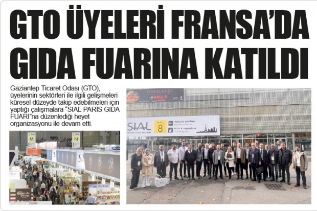 GTO, üyelerinin sektörel gelişimlerine destek sunmak amacı ile 15-19 Ekim 2022 tarihleri arasında Fransa’nın Başkenti Paris’te, dünyanın en büyük gıda fuarı organizasyonlarından biri olan ve iki senede bir düzenlenen SIAL Paris Gıda Fuarı’na KOSGEB destekli ‘Fuar Ziyareti ve İş Gezisi’ düzenledi.