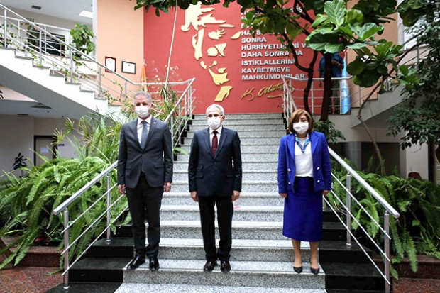 Gaziantep Valisi Davut Gül ve Gaziantep Büyükşehir Belediye Başkanı Fatma Şahin, Gaziantep Üniversitesi (GAÜN) Rektörlüğü’ne atanan Prof. Dr. Arif Özaydın’a hayırlı olsun ziyaretinde bulundu.