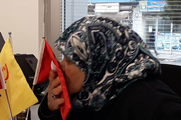 Gülçin Teyze masada bulunan şanlı Türk bayrağını üç kez öpüp başına koyarak, "Bu şehitlerimizin kanıdır bu bayrak" diye konuştu.