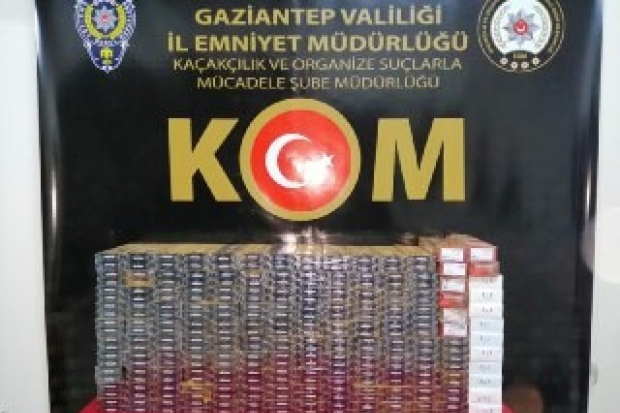 Gaziantep Emniyet Müdürlüğü Kaçakçılık Ve Organize Suçlarla Mücadele Şube Müdürlüğü ekipleri, Kepenek ve Sanayi mahallelerinde bir işyeri ve bir araçta yapılan aramada, 3 bin 290 paket gümrük kaçağı sigara, 14 kilo 500 gram gümrük kaçağı nargile tütünü ele geçirildi.
