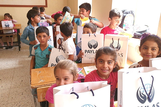 Gaziantep'te bulunan köy okullarındaki çocuklara kırtasiye malzemelerinin yanı sıra futbol, basketbol, voleybol topları ve fileleri de dağıtan Paylaş Derneği, çocukların beden eğitimi derslerine de katkıda bulundu.