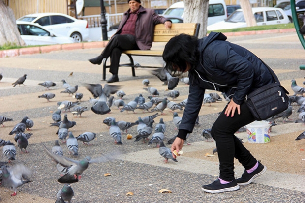 Gaziantep’te bahar mevsimi ile birlikte güvercinlerin akın ettiği Kırkayak Parkı'nda, vatandaşlar kuşları besleyerek günün yorgunluğunu atıyor.