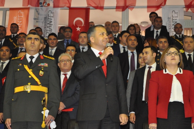 Gaziantep’te 29 Ekim Cumhuriyet Bayramı nedeniyle sabah saatlerinde valilik makamında gerçekleştirilen bayramlaşma töreninin ardından Kamil Ocak Spor Salonu’nda tören düzenlendi. Törene; Gaziantep Valisi Ali Yerlikaya, 5'inci Zırhlı Tugay Komutanı Tuğgeneral Murat Soysal, Büyükşehir Belediye Başkanı Fatma Şahin ve vatandaşlar katıldı. Protokol üyeleri, salonda kutlamalara katılanların bulunduğu tribünleri selamladı. Burada halka hitap eden Gaziantep Valisi Ali Yerlikaya, Cumhuriyet’i yaşatmanın boyunlarının borcu olduğunu söyledi.