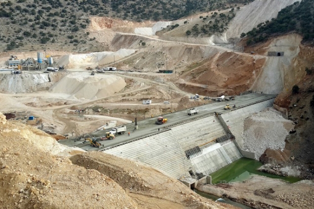 Müteahhit firma yetkilisi Mehmet Güneş, Ardıl Barajı Şantiye Şefi Salih Bilen, Barajı inşaatını gezen gazetecilere çalışmalar hakkında bilgi verdi.