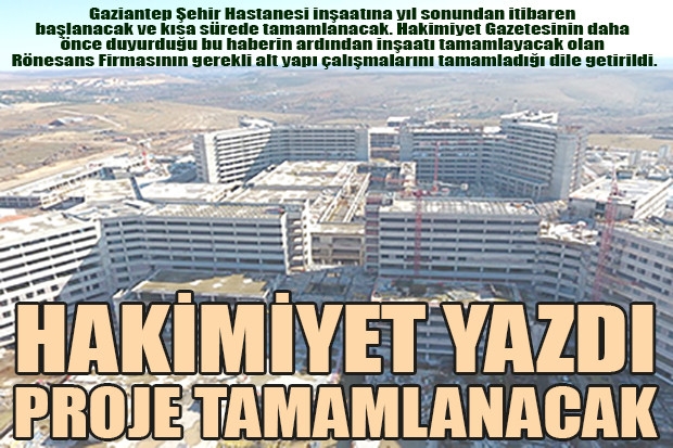 Yılan hikayesine dönen Gaziantep Şehir Hastanesi Proje inşaatı nihayet tamamlanacak. Hakimiyet Gazetesinin gündemden düşürmediği projeyle ilgili olarak Cumhur başkanı Recep Tayyip Erdoğan, inşaatın tamamlanması için gerekli adımların atılmasını sağladı. Projenin tamamlanmasına yönelik Gaziantep Büyükşehir Belediye Başkanı Fatma Şahin ise büyük çaba harcadı.