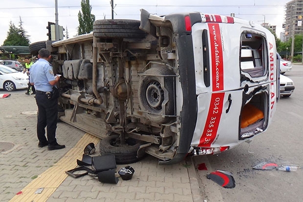 27 BND 25 plakalı 22 yaşındaki D.K. idaresindeki araç ile 43 yaşındaki ambulans sürücüsü K.Ö.'nün çarpışması sonucu ambulans yan yattı.