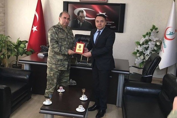 TSK Sağlık Komutanı Tümamiral Prof.Dr. Hayati Bilgiç, Gaziantep 5. Zırhlı Tugay Komutanı Tuğgeneral Ali Ekiyor ve beraberindeki heyet Kamu Hastaneleri Birliği Genel Sekreteri Uzm. Dr. Serdar Sarıfakı ve Kilis Devlet Hastanesi hakkında bilgi alarak, El Bab operasyonunda yaralanan askerleri ziyaret ettiler. Prof.Dr. Hayati Bilgiç, üstün çalışmalarından dolayı hastane çalışanları adına Kamu Hastaneleri Birliği Genel Sekreteri Uzm. Dr. Serdar Sarıfakı’ya teşekkür plaketi takdim etti.