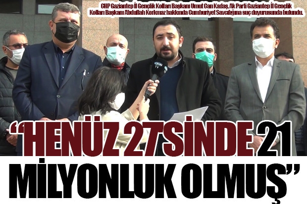 CHP Gaziantep İl Gençlik Kolları Başkanı Umut Can Kadaş, Ak Parti Gaziantep İl Gençlik Kolları Başkanı Abdullah Korkmaz hakkında ağıt ithamlarda bulundu. Korkmaz ile ilgili, “Öncesinde Fetullahçı Terör Örgütüne hadislerle övgüler yağdırmış, CHP'yi fetöcülükle itham etmiş, yetmemiş tacizci tecavüzcü demiş” diye konuşan Kadaş’a görevden alınan CHP Şahinbey ve Şehitkamil ilçe eski başkanları eşlik etti.