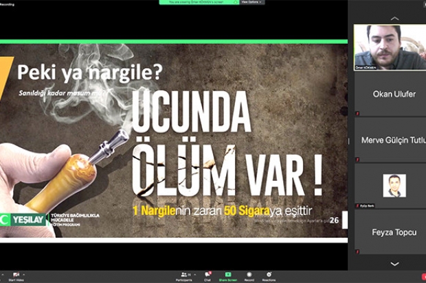 Çevrimiçi bilgilendirme seminerine yoğun ilgi gösteren katılımcılar, tütün mamullerinin zararları ve tütün mamullerini bırakma yöntemleri ile ilgili önemli bilgiler edindi. Konuşmacı olarak Yeşilay Gaziantep Şube Koordinatörü Eyüp Berk ve Tütün Bağımlılığı Formatörü Ömer Kökmen tütün mamullerinin zararlarını anlattı.