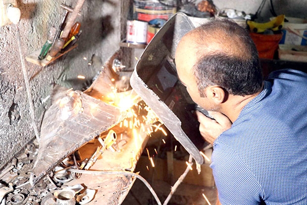 Gaziantep’te bir çiftçi, hurdacılardan topladığı atık metal ve demir parçalarından heykel ve maketler yapıyor.