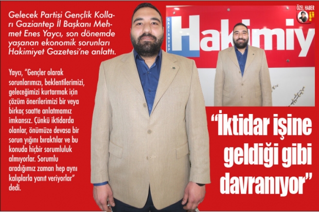 "Ülkemizde ‘’ev genci’’ diye bir tanımlama ortaya çıktı. Bu tanımlama, bir ülke için utanç kaynağıdır. Okulunu bitirdikten sonra iş bulamayan, ailesine yük olduğunu düşündüğü için utanıp evden çıkmayan, zihinsel olarak bitkin düştüğü için uyku düzeni bozulan bir gençliğimiz oldu. İktidar partisindekiler, biz gençleri içinde bulunduğumuz yıkımdan kurtarmak için çalışmak yerine, bizleri görmezden geliyorlar. Gelecek Partisi olarak, 29 Kasım 2021 tarihinde ‘’Yıkımdan çıkış için 61 öneri’’ yayınladık. İktidar partisindekilere, önerilerimizi okumalarını tavsiye ediyorum. Önerilerimizin sadece bir kısmını bile uygulasalar, biz gençleri çok daha güzel bir gelecek bekleyecek" diye konuşan Gelecek Partisi Gençlik Kolları Gaziantep İl Başkanı Mehmet Enes Yaycı açıklamasını şu şekilde sürdürdü;