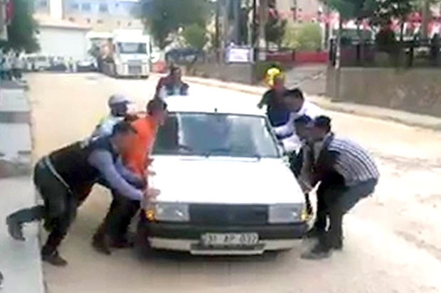 20 metrede bir iterek otomobili yola çıkardılar