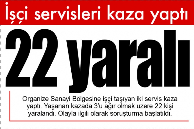 Kaza Çamlıtepe Mahallesi 41 nolu cadde üzerinde meydana geldi. Çamlıtepe Mahallesinde Organize Sanayi Bölgesi istikametine seyir halinde olan 2 işçi servisi sürücüsü, direksiyon hakimiyetleri kaybettikten sonra savrularak karşı şeride geçti. Kaza sırasında işçi servislerinden biri takla attı.